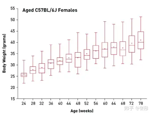 10月龄后体重会增加到 32 克以上(小鼠来源、饲料也有可能造成小鼠体重增加),15月龄以后常规体重都会达到33克以上,18月龄老年雄鼠体重常规在32克到38克之间;雌鼠正常在八个月以后退役鼠合笼,正常雌鼠在体重在23克以上 ,雌鼠年龄超过18 月~21月龄以后体重常规都在29克以上,22月龄雌鼠体重一般都会超过30克,最重可以达到40克左右。