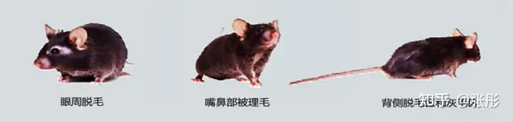 随着小鼠生长发育,外观会逐渐改变。一些常见的衰老表型有:眼周脱毛、嘴鼻部被理毛、背侧产生脱毛区及灰毛区等。